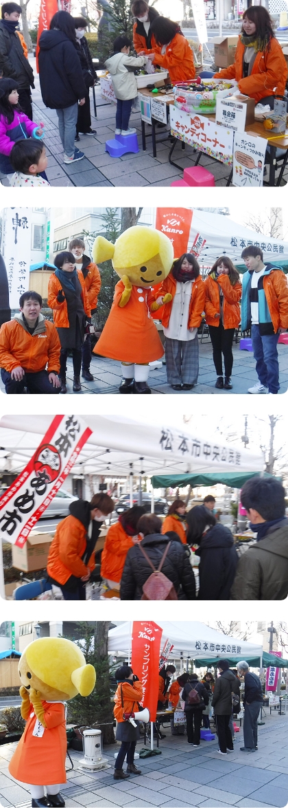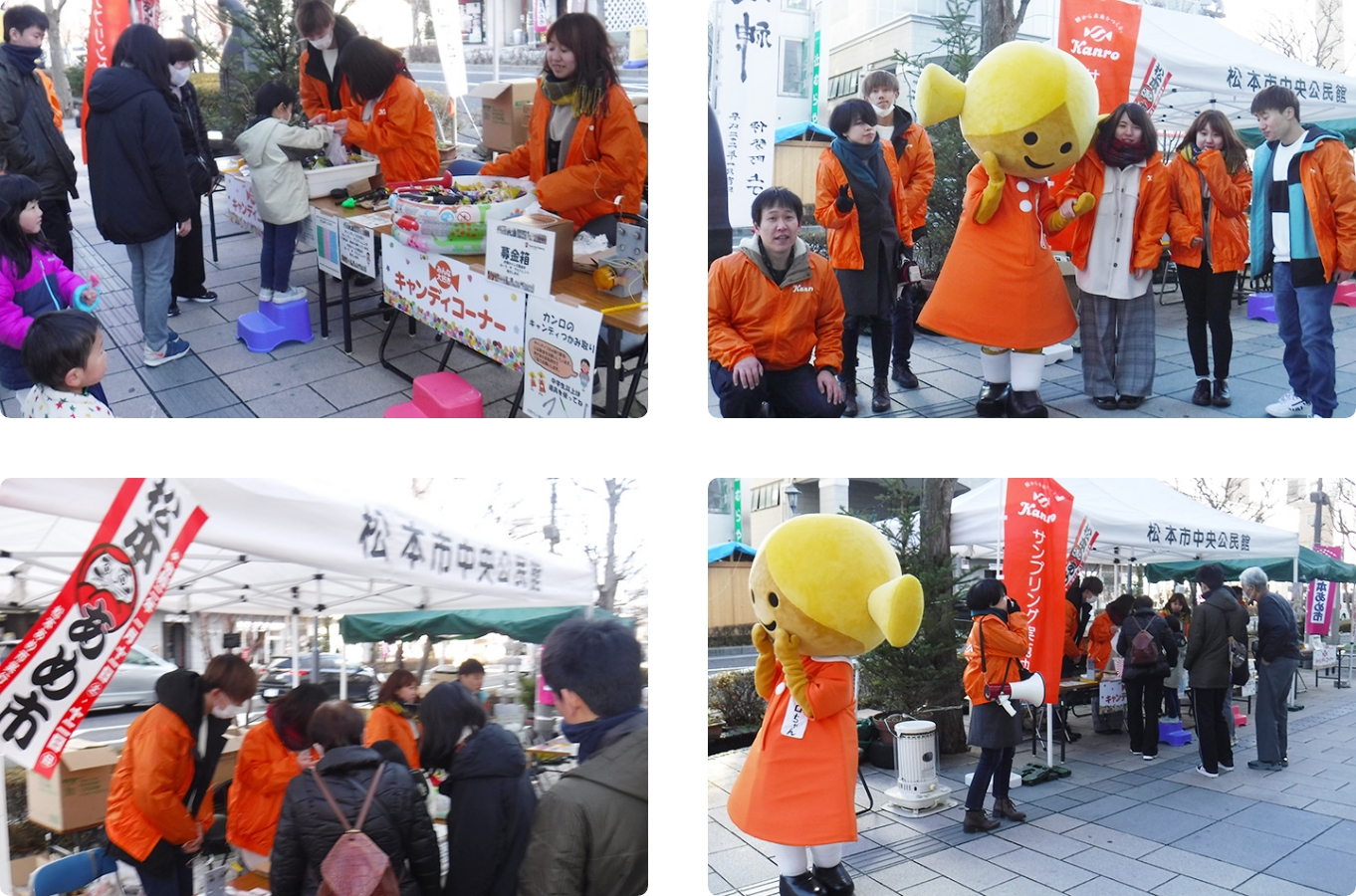 長野県松本市の新春恒例行事「松本あめ市」や、山口県光市にある光市民ホールおよびその周辺で開催される「光まつり」など、地元で人気のあるお祭りなどに参加しています。たくさんのお客様の声や笑顔に触れる機会となっており、出展者として参加する従業員も自分たちが普段作っている商品がどれほど愛されているかを実感できるかけがえのない時間となっています。