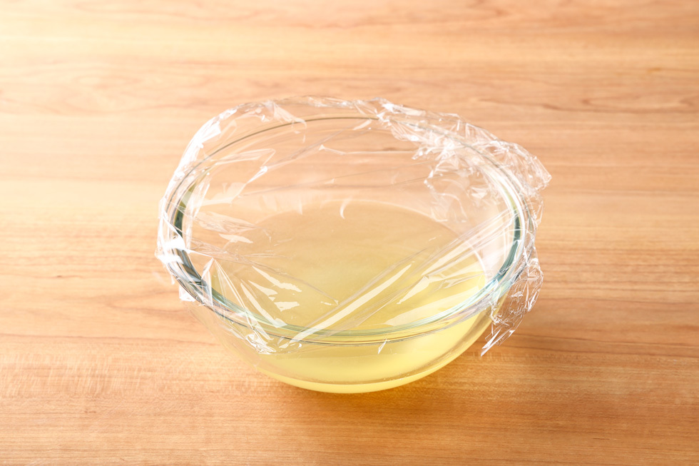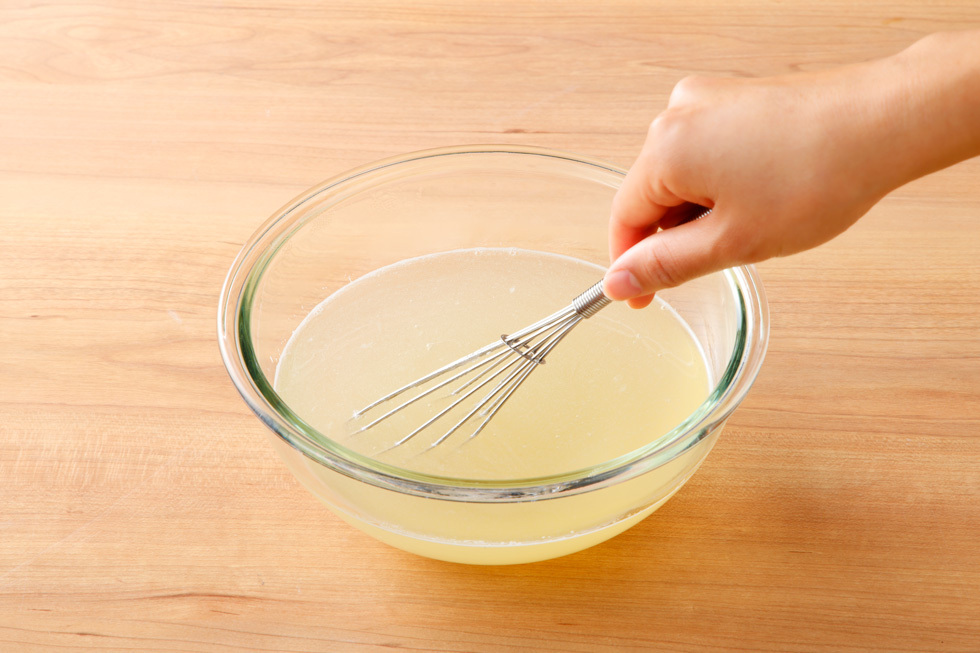 粉ゼラチンを入れてしっかりと溶かし、粗熱をとってバットに流し入れる。