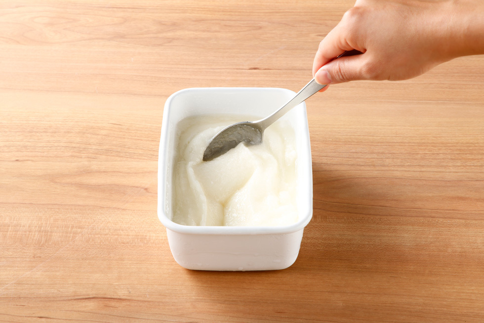 冷凍庫に入れ、時々かき混ぜながら凍らせる。