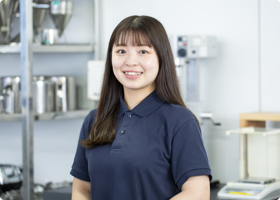 私の部署では与えられる裁量が大きくて、ラボ開発段階では、自分の考えや想いを尊重してもらい、自由に発想を広げながら新製品開発を進めることができています。 とはいえ、決して放っておかれるわけではなく、「こういうことをやるんだったら、ここを分析しておいたほうがいいよ」など、必要に応じてきちんとアドバイスをもらえます。そして、試作品チェックの際に、開発を通してどういうことを学んだかを上司と一緒に振り返るので、きちんと見守ってもらいながら成長できている実感があります。