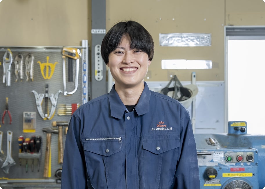 2020年12月にキャリア入社し、朝日工場の設備管理チームに所属しています。大学で電気・機械について学び、前職ではエレベーターやエスカレーターのメンテナンスをしていました。しかし、残業がとても多かったことや、首都圏で働くうちに「地元の長野で働きたい」という思いが強くなってきたことから、転職活動をはじめました。