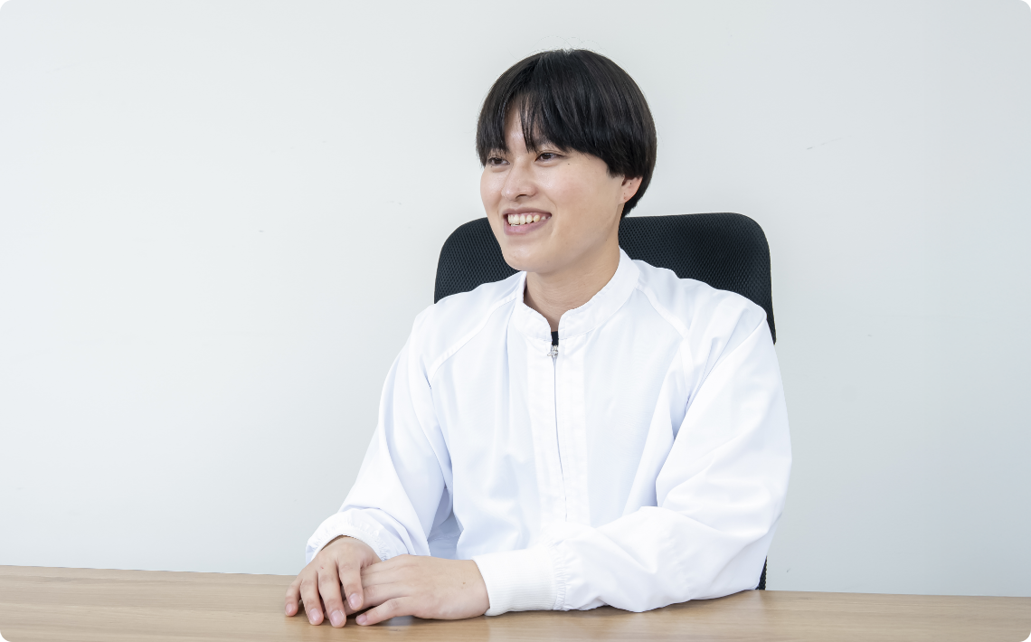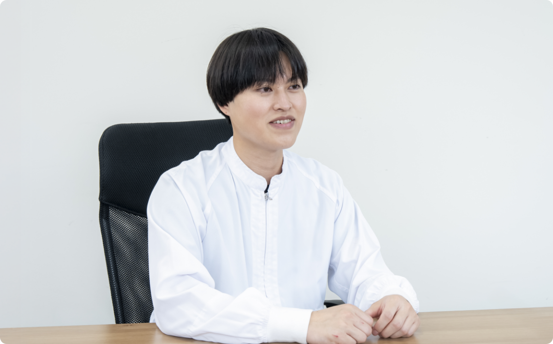確かに、製造工程と包装工程のほかにも、空調もメンテナンスを行うので、幅広い知識と技術が求められる環境だと思います。ただ、身につけないといけない知識が多いぶん、自分のスキルが上がる実感が得やすい。私はそこに、エンジニアとしてのやりがいを感じています。